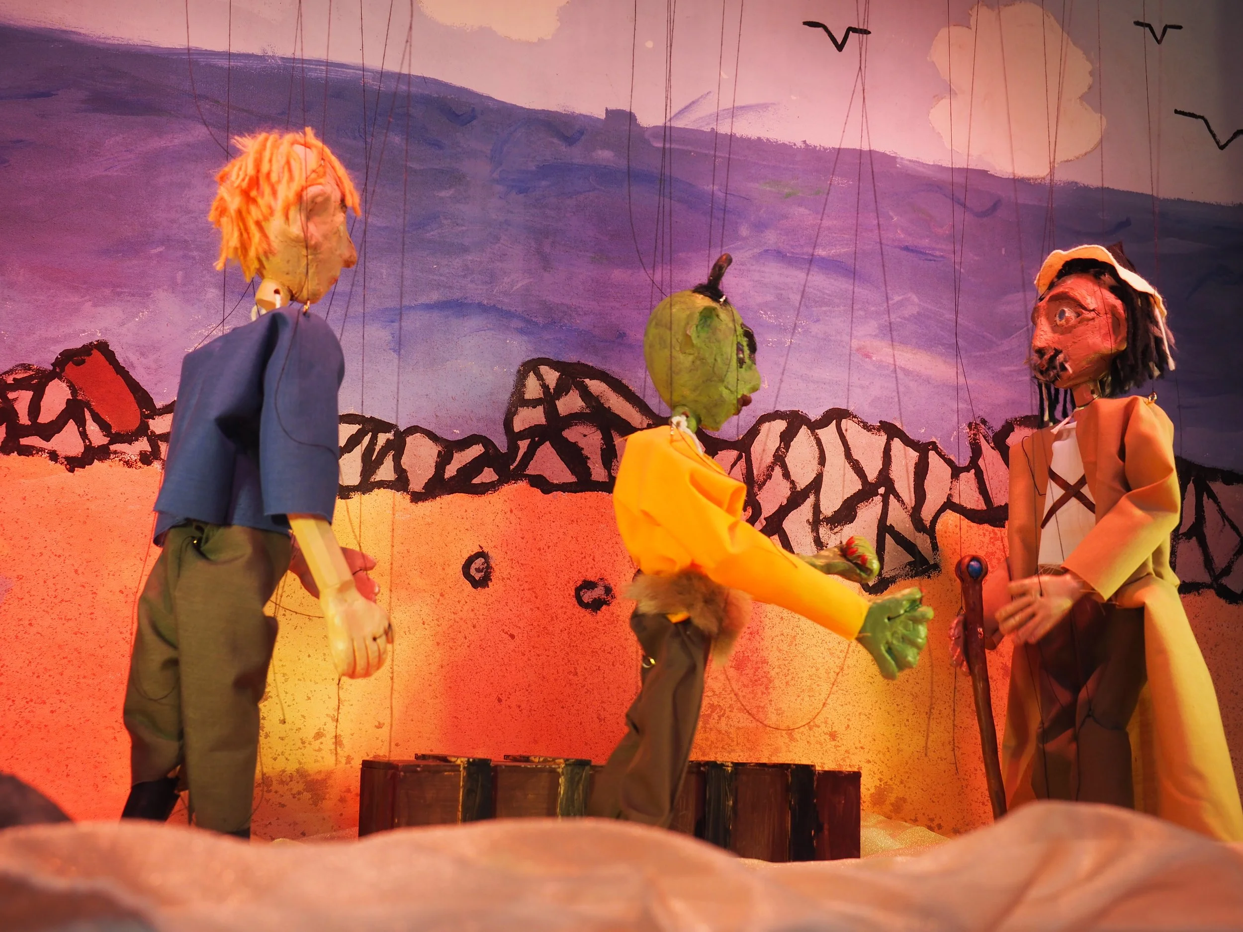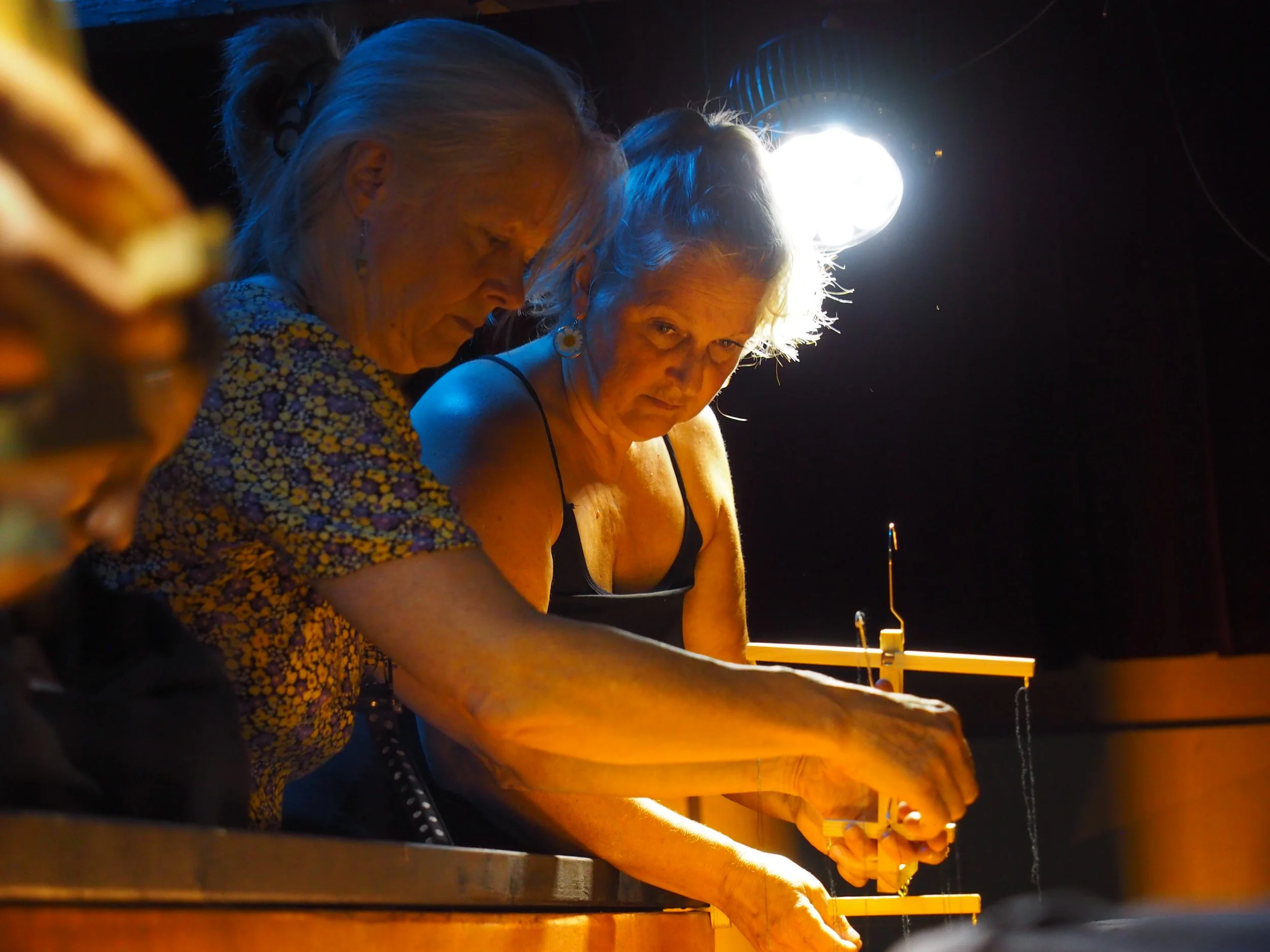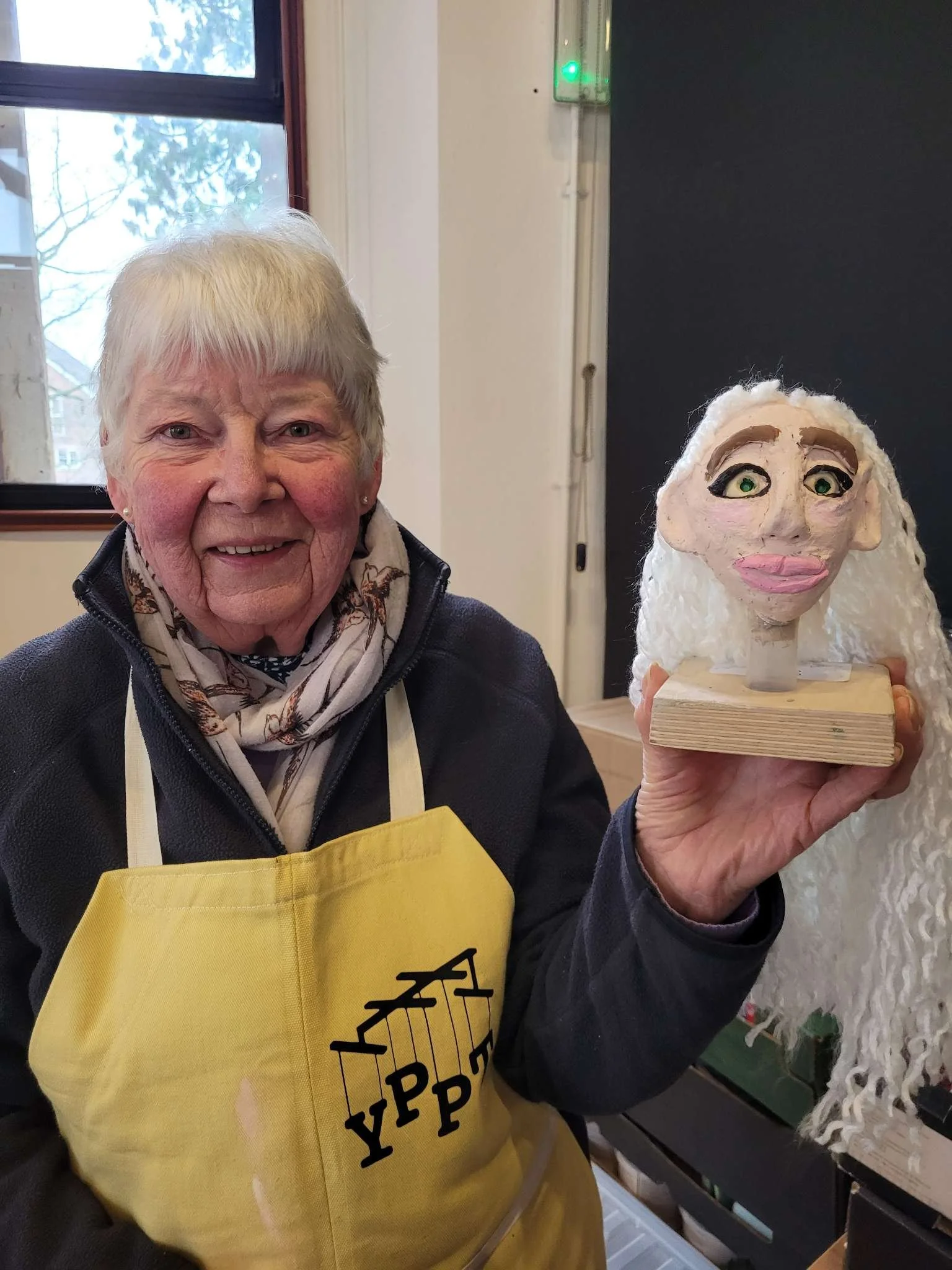 Our intergenerational projects bring older and younger puppeteers together. Older volunteers create puppets and sets for use in rehearsals and performances for the local community.